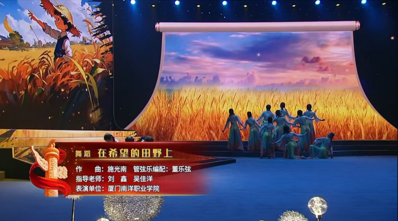 近期,我校师生接连亮相市、区两级重要文化艺术活动。12月28日,电影学院群舞《在希望的田野上》登上厦门市委宣传部主办的“三爱”主题宣传教育总结展示活动直播舞台;1月3日,教育学院师生助力思明区2026“春意盎然・福满思明”新年音乐晚会。12月28日晚20:30,由厦门市委宣传部牵头主办的2025年厦门市“爱党、爱祖国、爱社会主义”主题宣传教育总结展示活动在厦门电视台举行。我校电影学院选送的群舞作品《在希望的田野上》受邀直播演出,18名舞蹈专业学子在刘鑫、吴佳洋两位老师的悉心指导下,与厦门小白鹭民间舞艺术中心等专业院团同台献艺,以精湛的舞技与饱满的情感赢得现场观众的一致好评。电影学生师生紧扣“三爱”主题,将专业教学与思政教育深度融合,历时两个月创编完成舞蹈《在希望的田野上》。节目以改革开放以来的农村巨变为主线,通过“播种—耕耘—收获”三段式结构,用当代舞融合闽南民间元素的艺术语汇,生动诠释闽山闽水间的奋斗故事,深情礼赞在党的领导下乡村振兴壮美画卷。1月3日晚,由中共思明区委宣传部指导、思明区文学艺术界联合会主办、思明区音乐家协会承办的2026“春意盎然·福满思明”新年音乐晚会在思明区青少