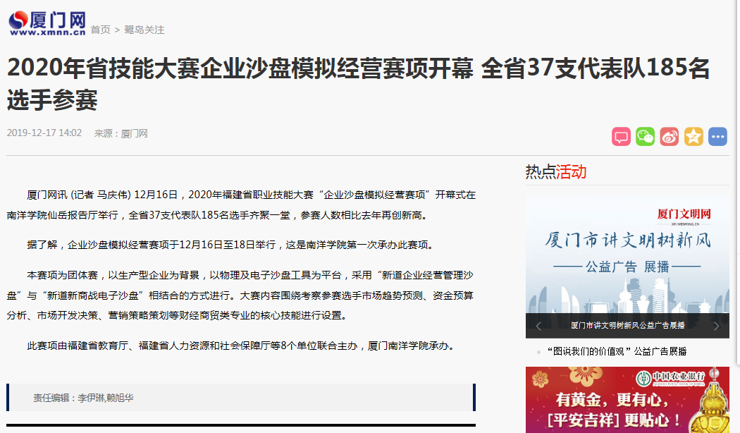 据了解,企业沙盘模拟经营赛项于12月16日至18日举行,这是南洋学院第一次承办此赛项。