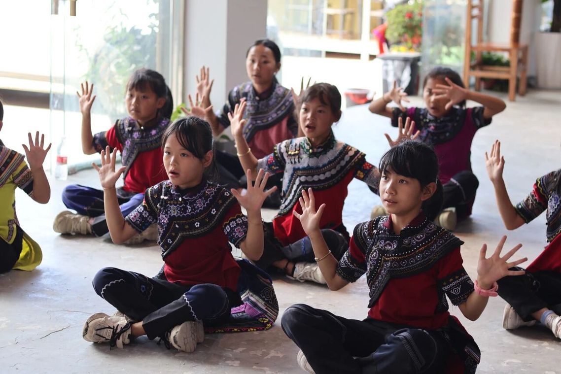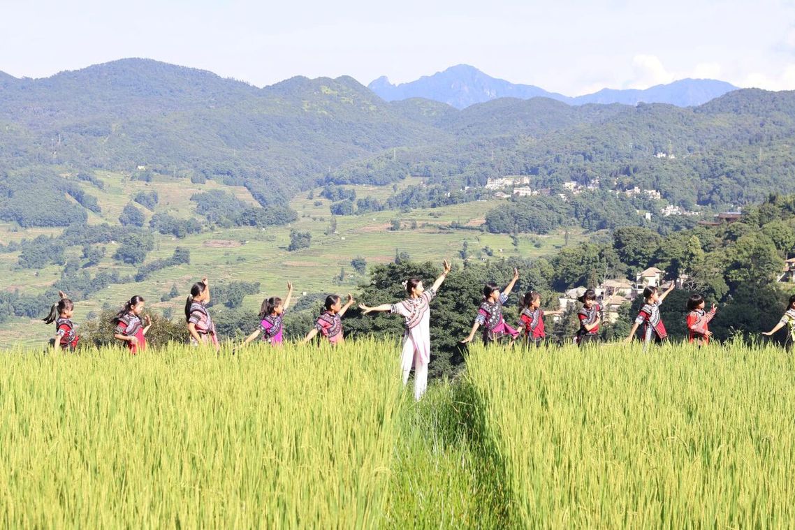 孩子不仅学习彝族舞蹈《哈尼宝贝》、启蒙舞蹈《表情秀》、中华咏诗舞《赠汪伦》,还重新编排了国家级非物质文化遗产哈尼族《乐作舞》的舞蹈片段。谈及为什么要教孩子们这些舞蹈时,袁颖捷说当地的舞蹈极具特色和魅力,充满对生命的庆祝,对自然的赞歌。我们保留了如此完整的原生态舞蹈,作为一名党员教师,我们有义务也有责任,继承和弘扬优秀的传统文化。
