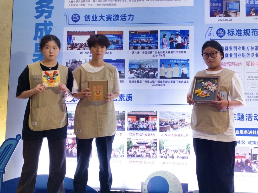 我校的非遗剪瓷雕项目受邀出席本次盛会,项目创始人谢金贝和团队核心成员侯心仪、王舒琳精彩亮相,并被C位推荐,获得厦门日报、海西晨报等多家媒体的采访。