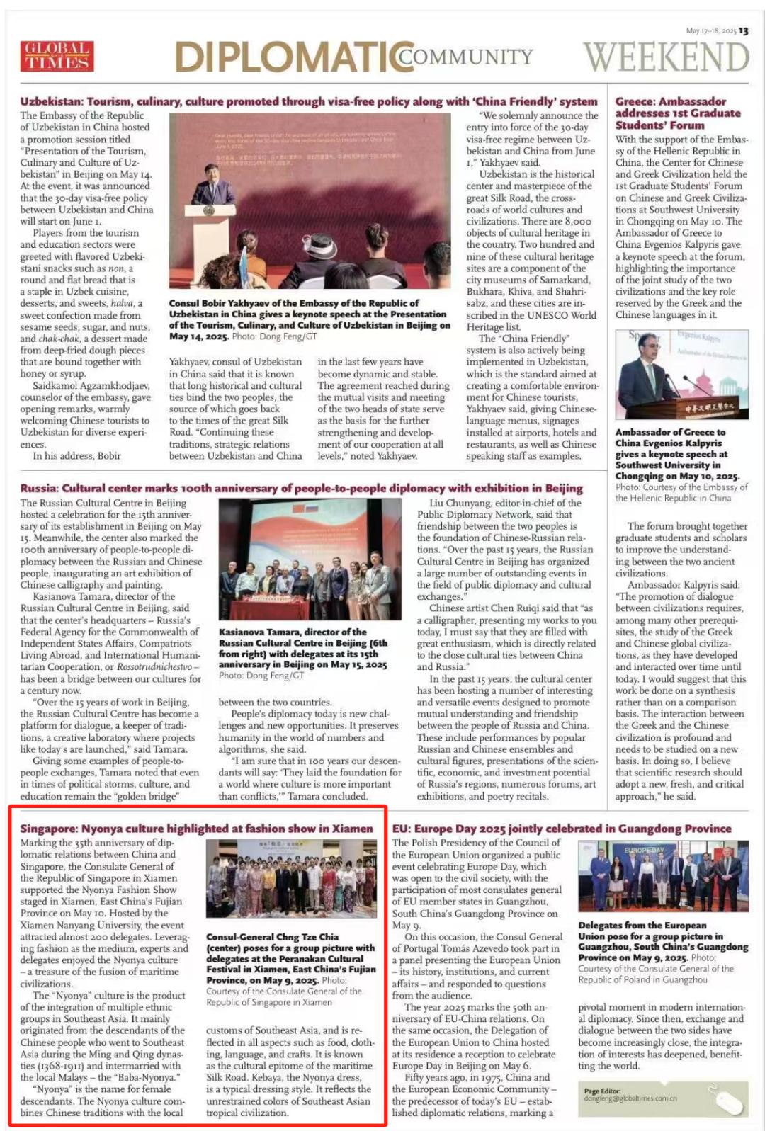 2025年5月18日,娘惹服装秀的报道登上《环球时报》英文版(Global Times)。