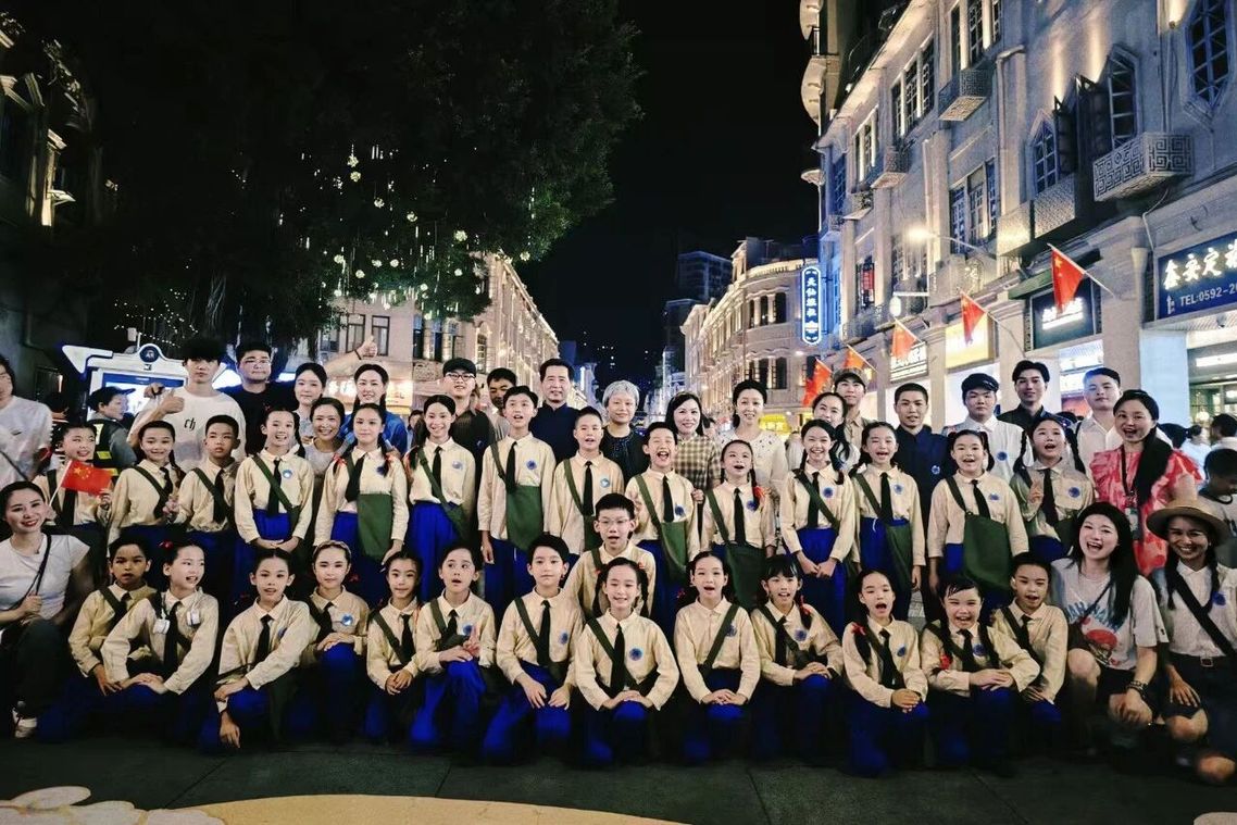 10月1日至10月4日,由政协厦门市思明区委员会主办、思明区文旅局承办,我校师生参演的原创音乐剧《童声燃战歌》焕新而来,该剧以抗战时期中国四大儿童团体之一——厦门儿童救亡剧团(简称“厦儿团”)的真实历史故事为蓝本,以行进式情景演出《英雄厦儿》登陆厦门中山路,通过精选核心点位串联成“流动剧场”情景化表演,生动再现红色记忆,为市民和中外游客带来了一场震撼心灵的视听盛宴,成为国庆期间一道亮丽的文化风景线。