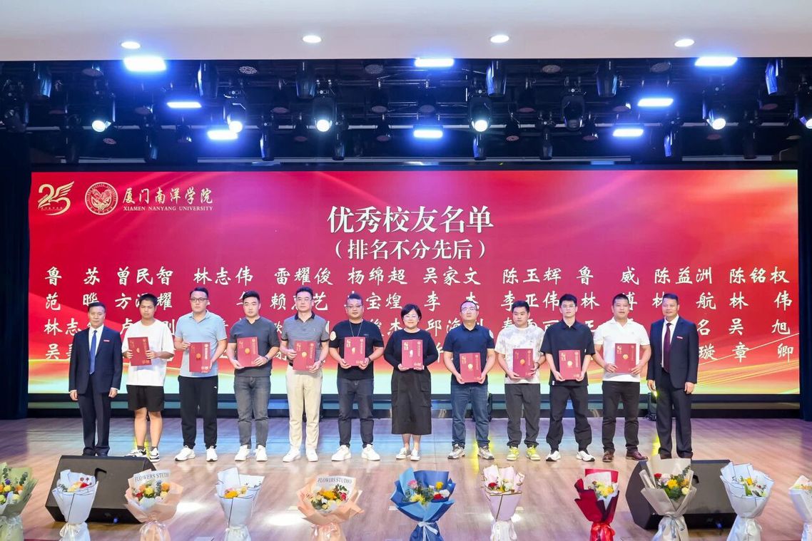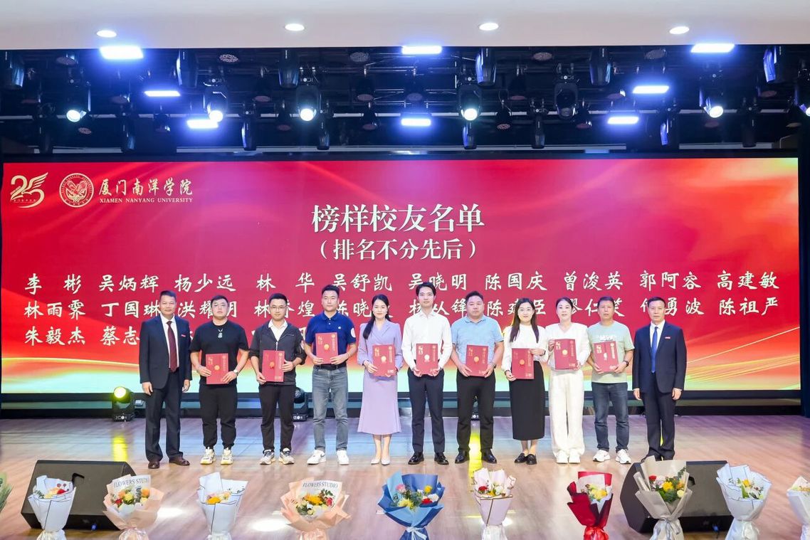 学校副校长、第三届校友会副会长蓝德森宣读表彰决定。李彬等25名校友被评为“榜样校友”,蔡楚楚等131名校友被评为“优秀校友”。