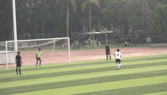 南洋客串门将的白朗天成功扑到点球,但未能将球彻底捞出,厦大凭借此球3:2暂时领先