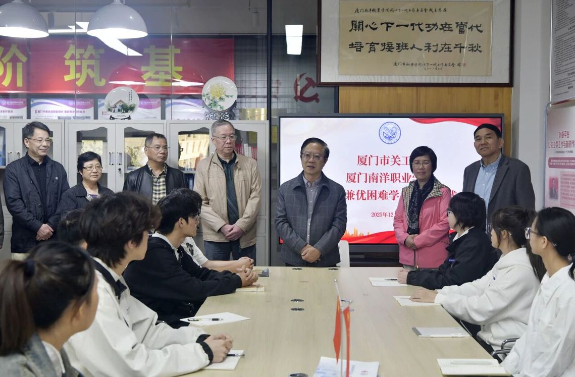 我校创办人、南洋教育投资董事长鲁加升教授回顾了办学初心与育人实践。他表示,学校坚持“类型教育”理念,针对职业教育学生的特点,经过25年的探索,形成了行之有效的特殊类型人才培养路径,成功帮助一大批特殊学生成长成才、成功创业,既有入职知名企业、年薪可观的职场精英,也有身残志坚、创业成功并投身公益的优秀代表,累计为厦门输送6万余名高素质人才。他强调,学校高度重视关工委工作,未来将继续积极支持关工委工作。