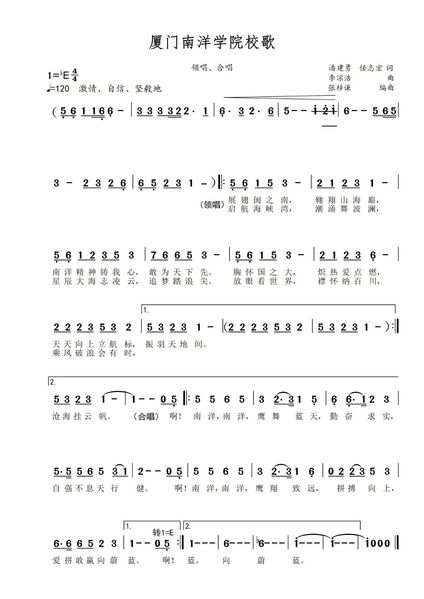 厦门南洋学院校歌