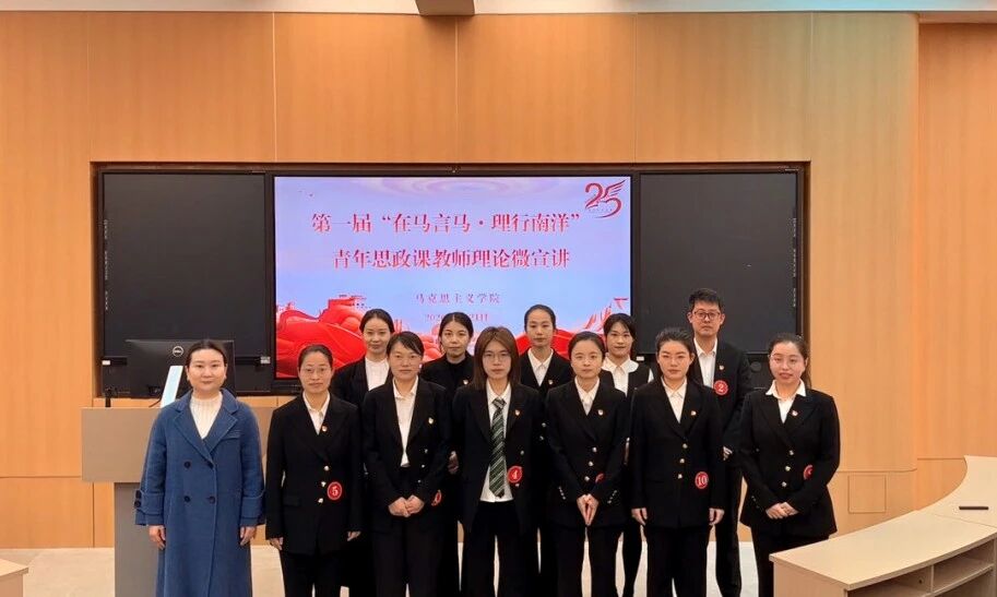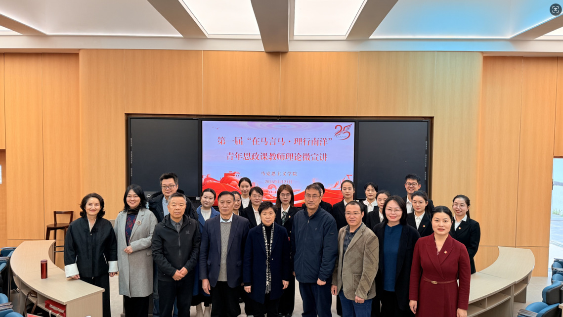 为持续深入贯彻落实立德树人根本任务,扎实推进新时代思想政治理论课改革创新,1月21日,我校成功举办第一届“在马言马·理行南洋”青年思政课教师理论微宣讲比赛。党委书记陈宏瑶、原副校长何卫华、校长助理侯红科及马克思主义学院全体教师参加活动。