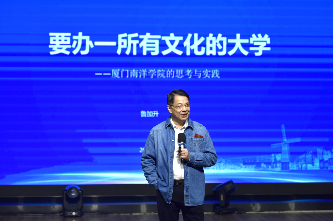 “每一位师生怎么成为校园文化的建设者,这个问题值得我们思考。”谈及厦门南洋学院校园文化的核心内涵,鲁加升教授用“爱、适合、创新”三个关键词进行概括,这与他首创的“成长学”核心理念相辅相成——“爱”是教育的底色,“适合”是育人的关键,“创新”是发展的动力。他强调,大学文化应兼具温度、深度、高度、广度,当文化内化为师生的集体无意识,融入日常学习工作的每一个细节,大学才拥有了真正的灵魂。他呼吁,每一位南洋师生都是校园文化的建设者、传承者与创造者,要主动践行校园文化理念,以自身行动滋养校园文化,让文化之花在南洋校园常开常艳。